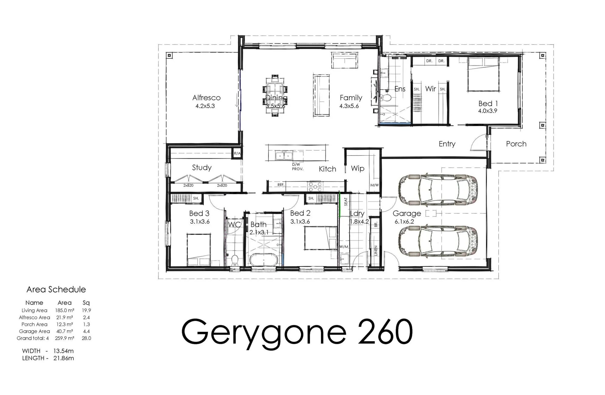This home has been designed for the downsizer or a small family. When you enter the home from the double garage you are greeted by a practical mud room- laundry zone – and instant access to the kitchen-pantry zone. In the heart of this home is a spacious open plan family & dining zone, highlighted by the raked ceiling and large entertainer’s kitchen for family meals and welcoming friends over for a visit. The modern and practical layout features a 2 pak kitchen with double ovens and induction cooktop. The generous dining area flows out onto the undercover alfresco. The master bedroom is located at the front of the home and offers a luxurious WIR and Ensuite. The main entry is spacious and the other 2 bedrooms are zoned from the master and living areas, serviced by a second bathroom which has a wet room layout. We have considered the running cost of the home and made this home fully electric with energy rating appliances & Hot water system.